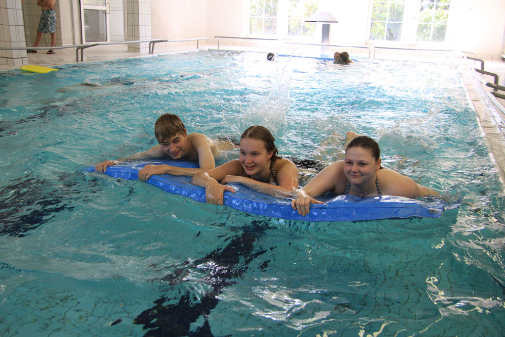 Gruppensetting (gemeinsame Sportgruppen, medizinische Trainingstherapie, Stationstraining, gemeinsames Schwimmen).