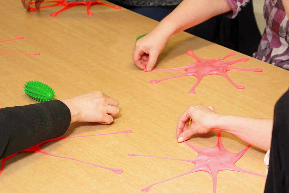 Ihr könnt Euch mit Hilfsmitteln vertraut (Hilfsmittelberatung u. -anpassung) machen, handwerklich-gestalterisch und spielerisch-motorisch funktionale Fähigkeiten trainieren und durch computergestütztes Training eure Aufmerksamkeit und Konzentration verbessern.